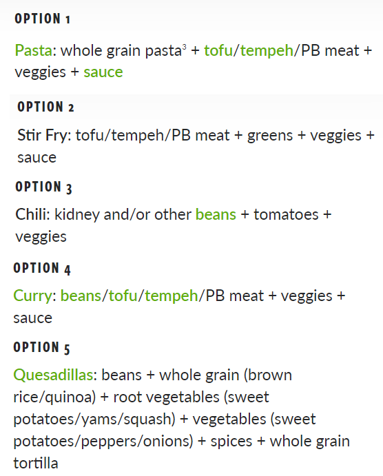 영화 끝에 나온 사이트에서 알려준 채식식단표