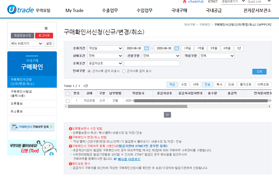 "구매확인서 통합서비스 바로가기" 나중에 사용해야하니 기억만 해두면 됩니다.