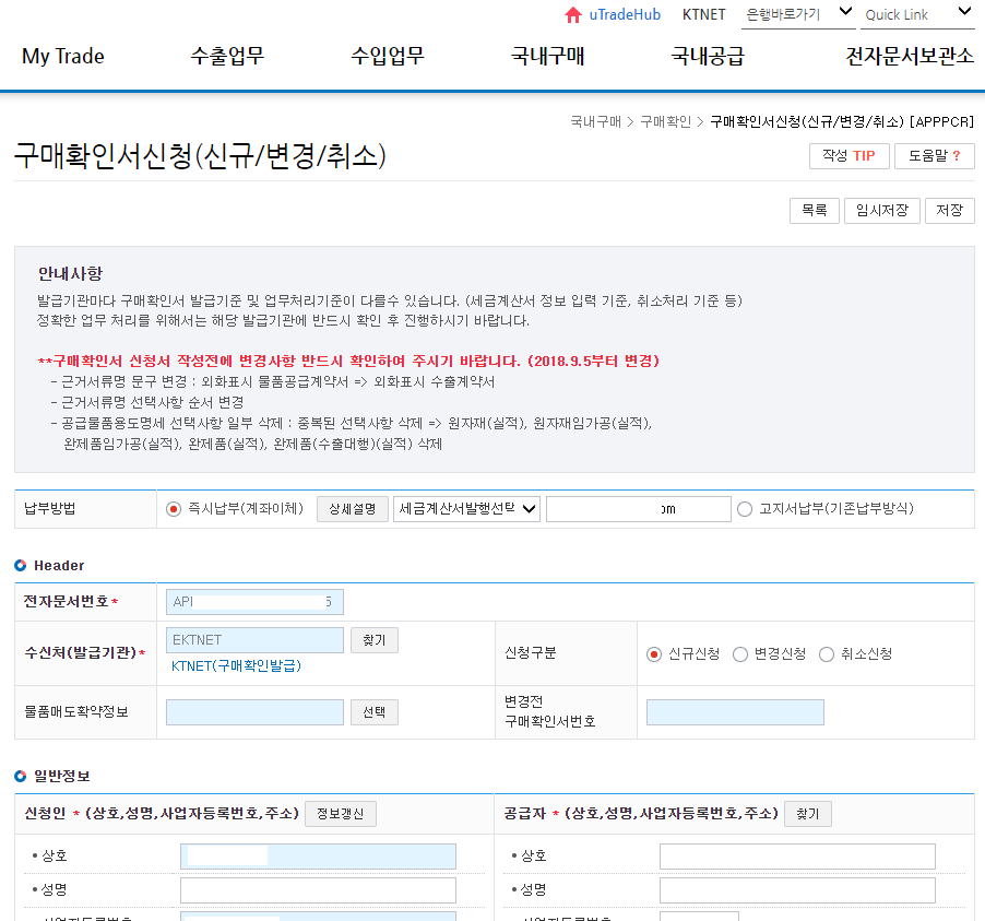 공급자: 매입한 거래처(=구매확인서 요청한 업체)