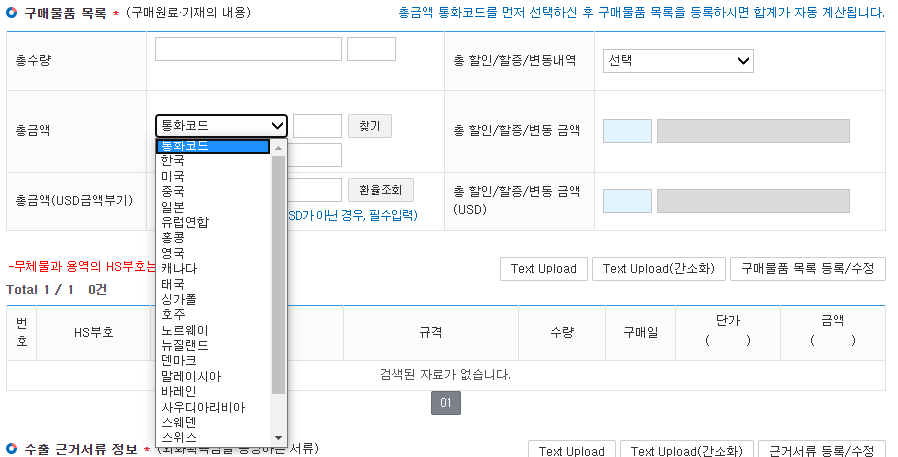 총금액 통화코드: 매입시 납부했던 통화로 선택